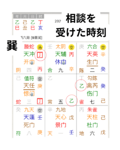 相談を受けた時の盤面では、お札を移すべき方位を表す「丁」(闇を照らす聖なる灯火)が、南東(巽宮)に「丙」(太陽のような熱量)と一緒に座っていました。